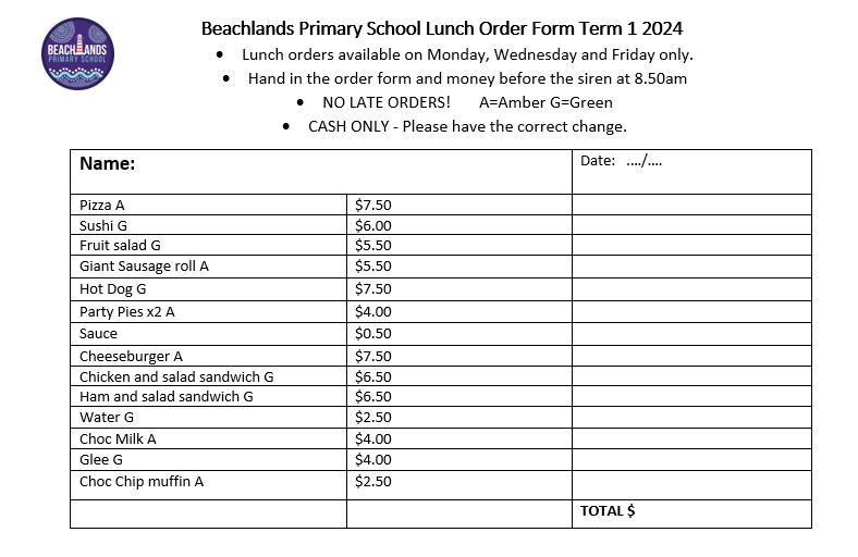 The Beachlands Primary School P&C operate a canteen every Thursday. Orders can be made in the undercover area on Thursday mornings or can be placed online through the following link: Beachlands P&C Canteen