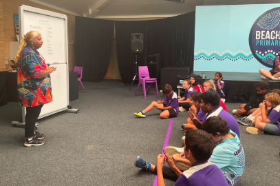 Local Elder, Lee-Anne Taylor, taught our Year 5 and 6 students about storytelling through song. Lee-Anne and the students created and recorded a beautiful song about Beachlands Primary School.